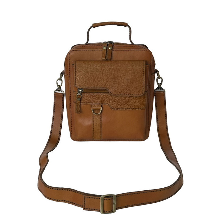کیف حمایلی مردانه با چرم طبیعی درجه 1 100 درصد دست دوز دارای یراق آلات مرغوب وبند چرمی بسیار محکم و قابل تنظیم بوده است همچنین دارای جیب و زیپ داخلی و خارجی- جای کارت می باشد