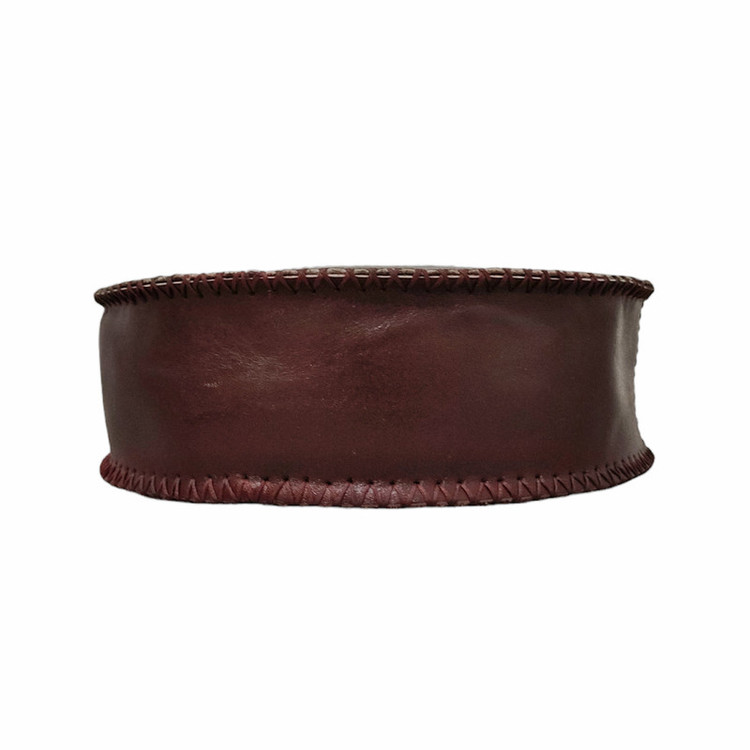 کیف گرد قلم زنی شده با چرم گاوی درجه یک 100 درصد دست دوز دوخته شده با نخ موم زده ترک است این کیف زیبا دارای بند چرمی دوشی بسیار محکم و قابل تنظیم با جیب داخلی و یک دسته چرمی را دارا میباشد