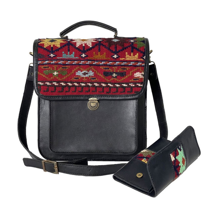 ست کیف اداری و کیف پول گلیم چرم طبیعی گاوی درجه یک 100 درصد دست دوز با کیفیت بسیار عالی و تضمینی همراه بند چرمی دست دوز دوخته شاید با نخ موم زده قابل تنظیم دارای جیب داخلی جاکارتی و جای خودکار است