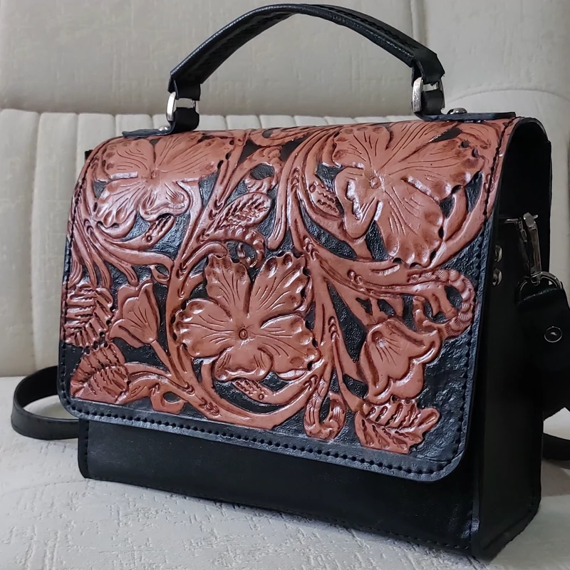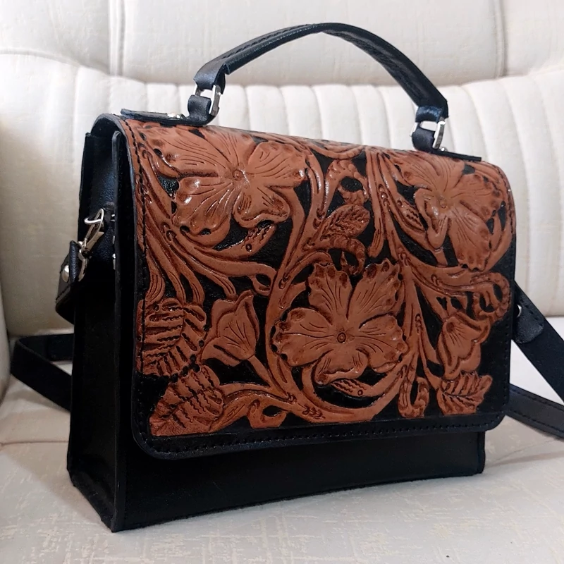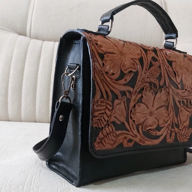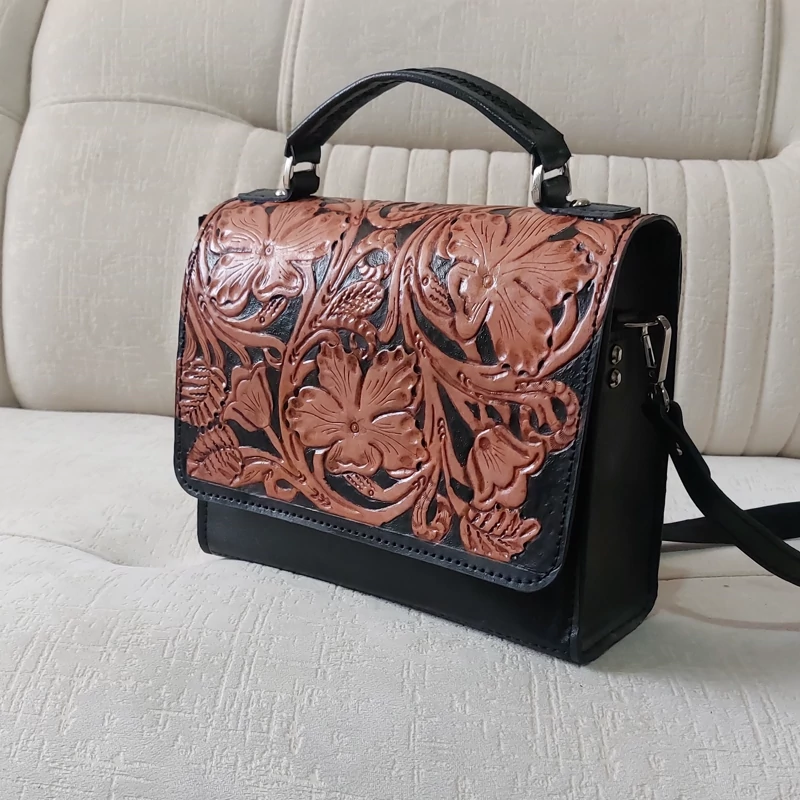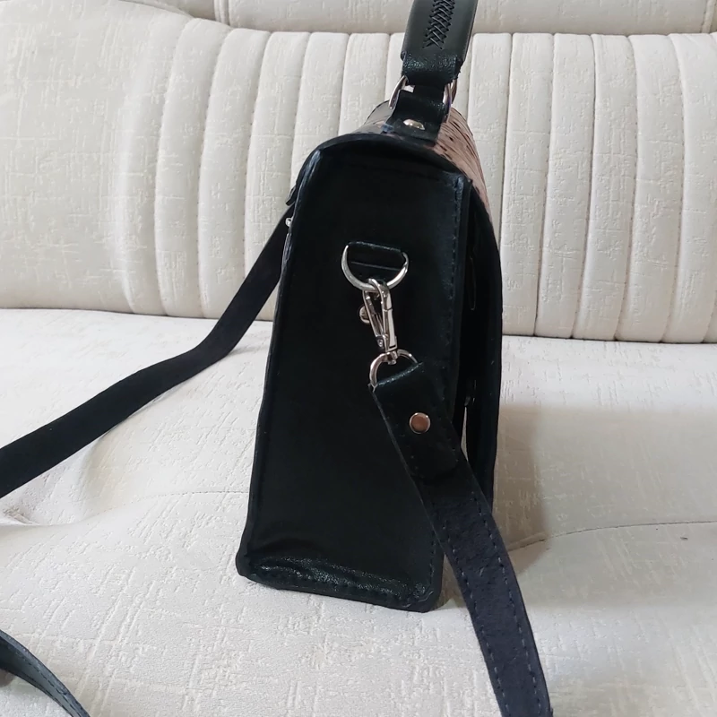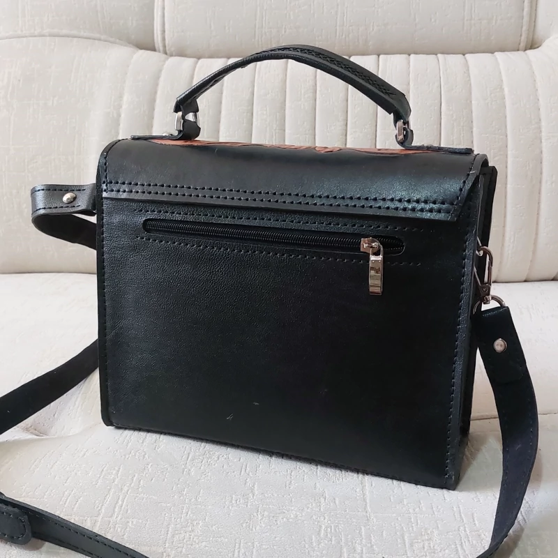 کیف قلمزنی زنانه شده با دست جنس کیف از چرم طبیعی و صدرصد دست دوز با نخ موم زده ترک می باشد این کیف دارای جیب و زیپ داخلی و بیرونی می باشد