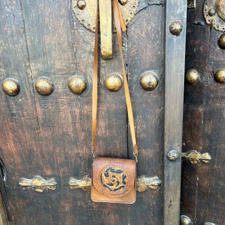 کیف مینی قلم زنی بسیار شیک و زیبا چرم طبیعی درجه یک با ترکیب قلمزنی