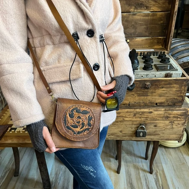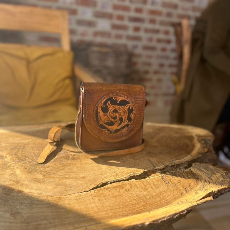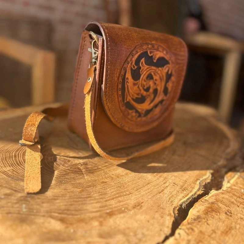 کیف مینی قلم زنی بسیار شیک و زیبا چرم طبیعی درجه یک با ترکیب قلمزنی