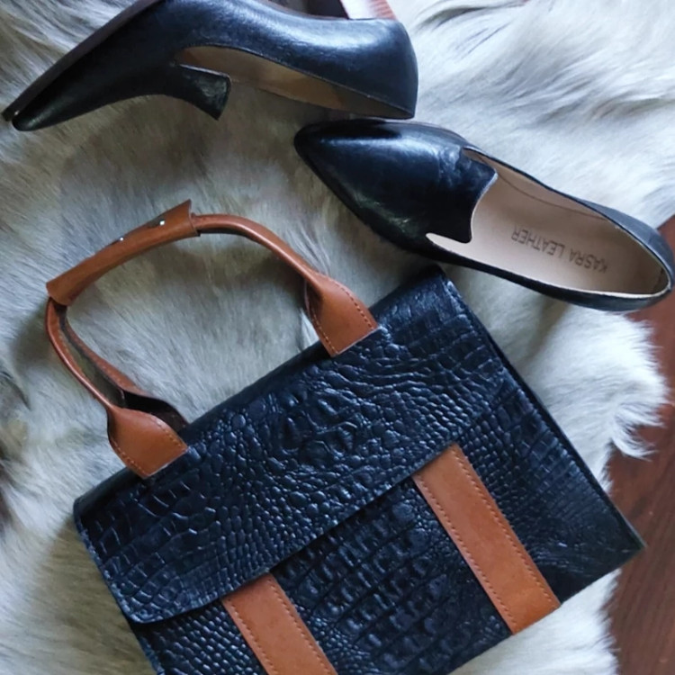ست کیف و کفش چرمی چرم طبیعی دست دوز دوخته شده با نخ موم زده جادار و شیک با ضمانت کیفیت محصولات چرمی