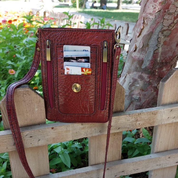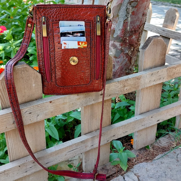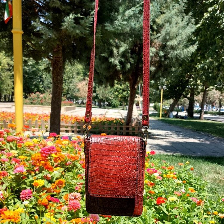 کیف پاسپورتی جنس آیت کیف از چرم گاوی طرح کروکودیل بوده این کیف صدرصد دست دوز دوخته شده با نخ موم زده ترک میباشد دارای جا کارتی و جای زیپ و جیب داخلی و بند بلند میباشد