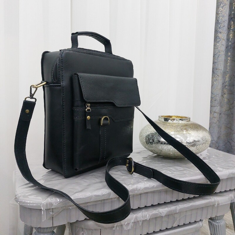 کیف دوشی مردانه با چرم طبیعی درجه یک صدرصد دست دوز بسیار شیک و جادار با بحد دوشی جدا شدنی