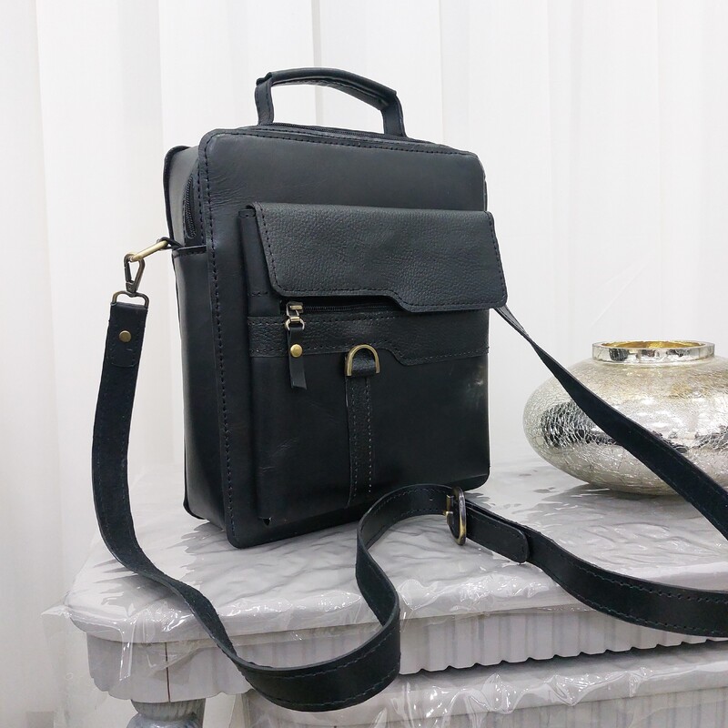 کیف دوشی مردانه با چرم طبیعی درجه یک صدرصد دست دوز بسیار شیک و جادار با بحد دوشی جدا شدنی