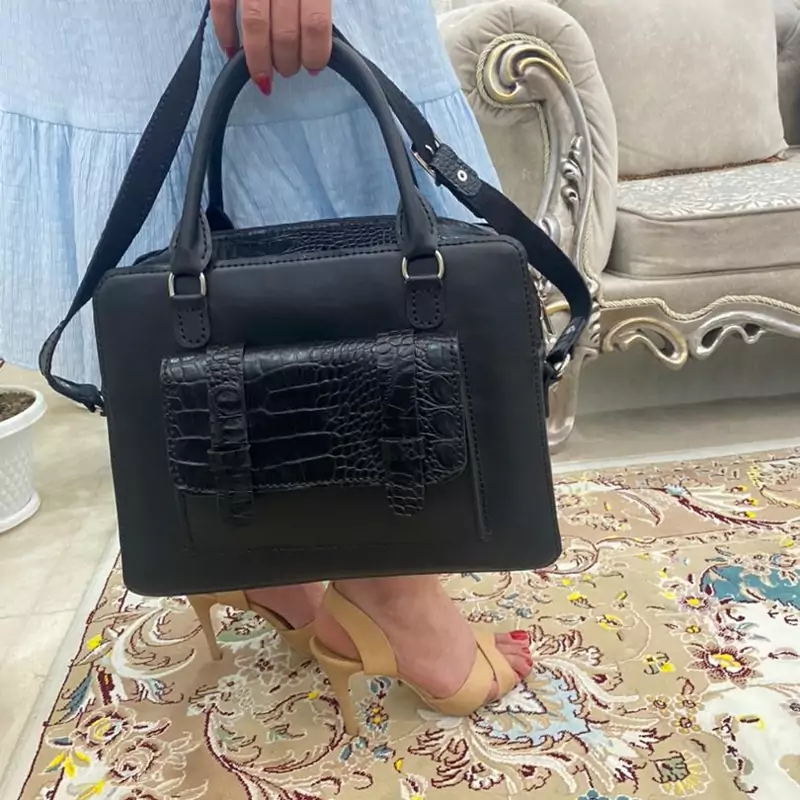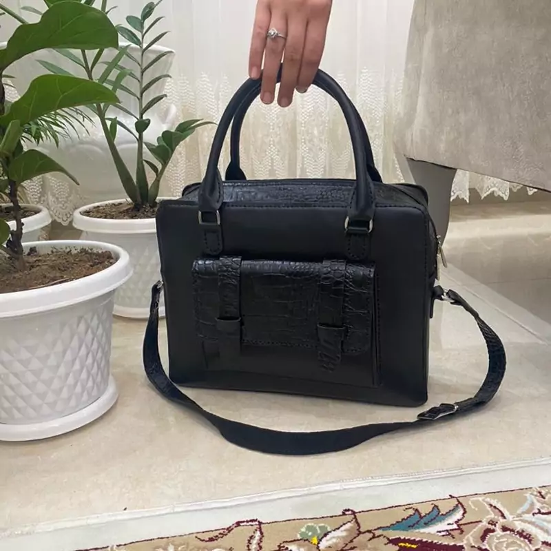 کیف چرمی زنانه دارای چرم طبیعی درجه یک گاوی دوخته شده با نخ موم زده ترک این کیف با کیفیت عالی دارای بند دوشی جدا شدنی و قابل تنظیم و همچنین دارای جیب و زیپ داخلی نیز میباشد