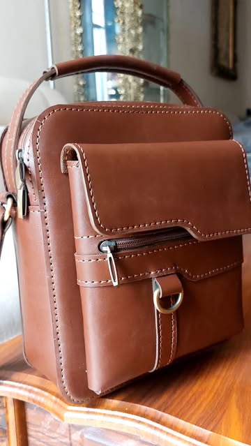 کیف دوشی مردانه چرم طبیعی دست‌دوز